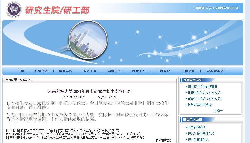 點擊查看:河南科技大學2021年非全日制專業學位碩士研究生招生專業目錄