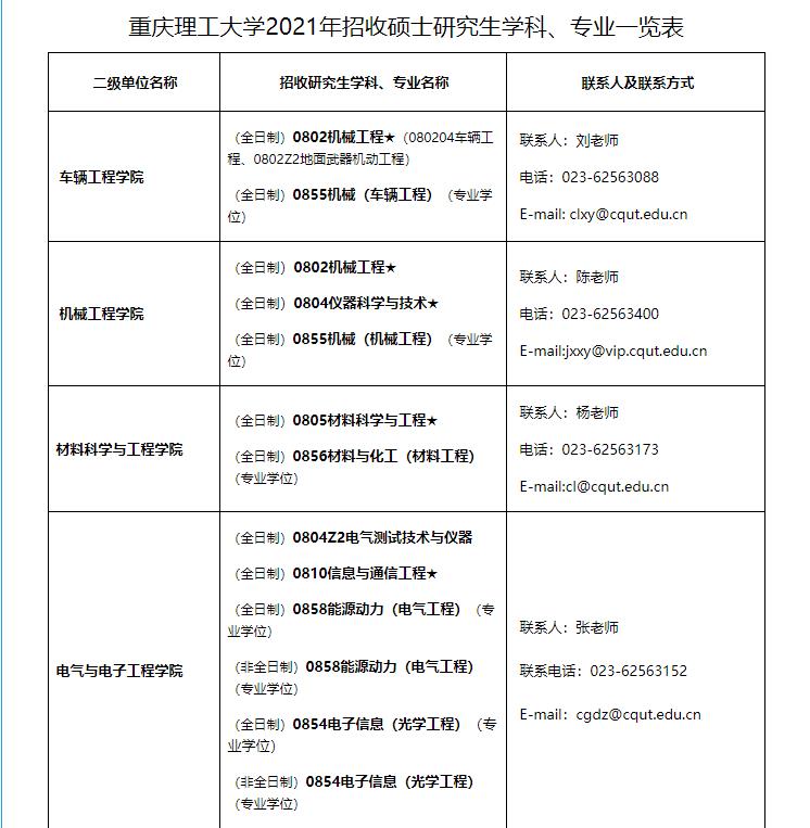 以上是為考生整理的“2021考研專業(yè)目錄:重慶理工大學(xué)2021年招收碩士研究生學(xué)科、專業(yè)一覽表”的相關(guān)內(nèi)容,希望對2021考研的同學(xué)們有所幫助。