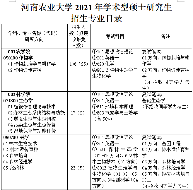 以上就是小編整理“2021考研專業目錄:河南農業大學2021年學術型研究生招生目錄”的全部內容,想了解更多相關信息,請持續關注研線網!