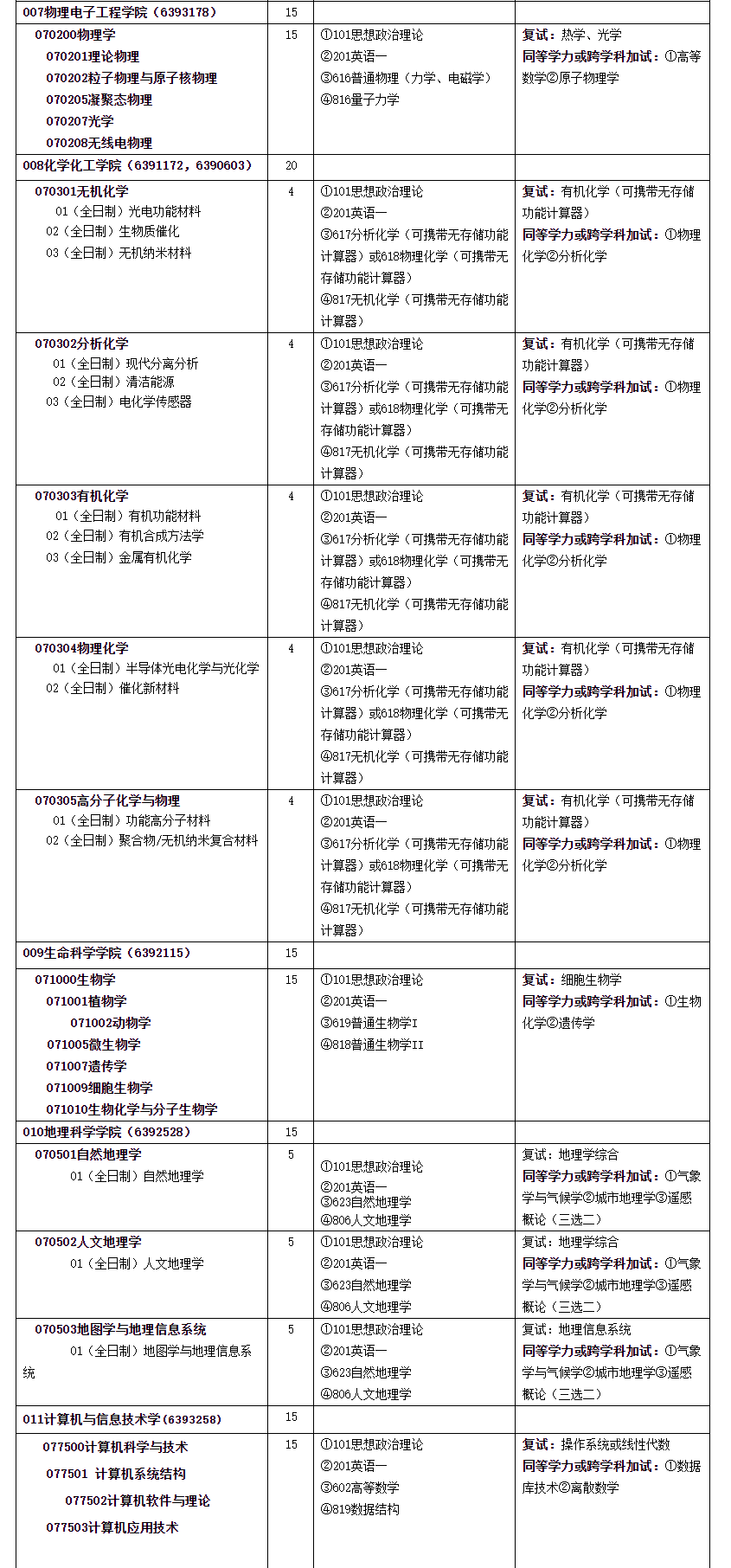 3、今年我校教育學、心理學、數學、物理學、生物學、計算機科學與技術、中國史7個專業按一級學科招生。其中教育學一級學科下的“教育技術學”復試科目與其它教育學復試科目不同。