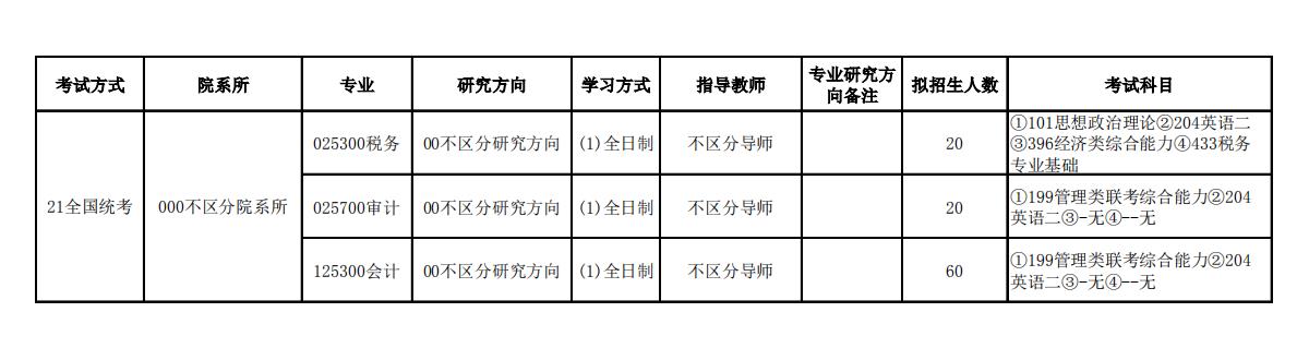 2021考研專業目錄:廈門國家會計學院2021年碩士研究生招生專業目錄