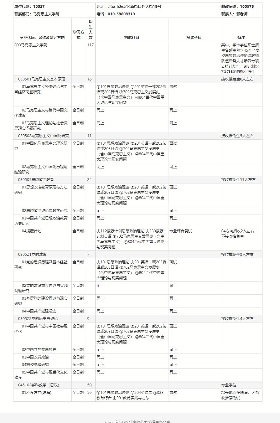 以上就是“2021考研專業目錄:北京師范大學馬克思主義學院2021年碩士研究生招生專業目錄”的全部內容!祝您考研成功!更多考研動態、院校資訊請持續關注研線網