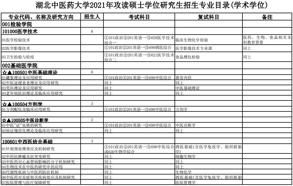 點擊查看:湖北中醫藥大學2021年攻讀學術學位碩士研究生專業目錄