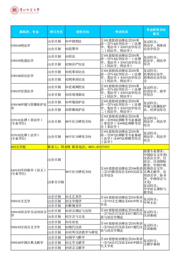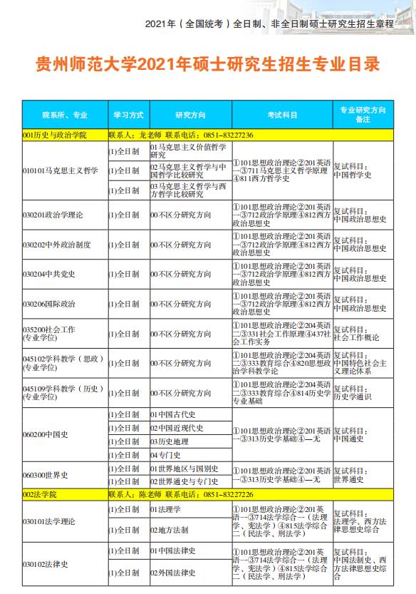 以上就是“2021考研專業目錄貴州師范大學2021年碩士研究生招生專業目錄的內容,祝大家成功!