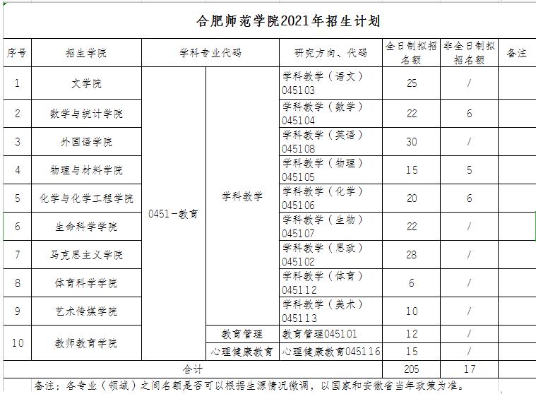 以上就是“2021考研招生計(jì)劃:合肥師范學(xué)院2021年擬招生計(jì)劃”的全部?jī)?nèi)容,祝大家成功!