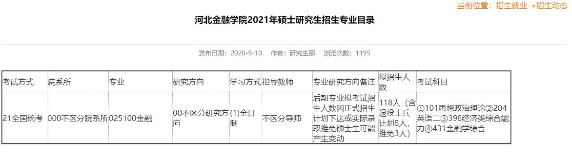 2021考研專業目錄:河北金融學院2021年碩士研究生招生專業目錄