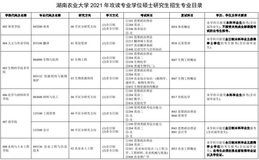 點(diǎn)擊查看:湖南農(nóng)業(yè)大學(xué)2021年攻讀專業(yè)學(xué)位碩士研究生招生專業(yè)目錄