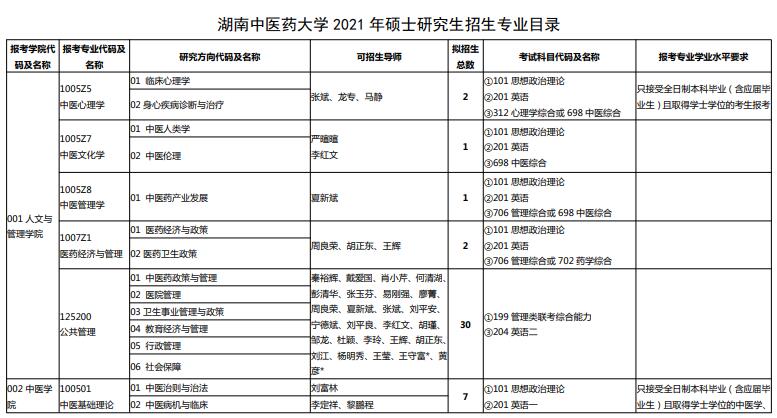 原文標題:湖南中醫藥大學2021年碩士研究生招生專業目錄
