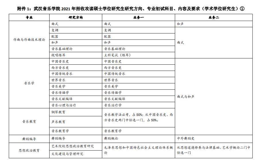 以上就是“2021考研專業目錄:武漢音樂學院2021年招收攻讀碩士學位研究生專業目錄”的全部內容!更多2020年招生簡章信息,盡在招生簡章欄目!
