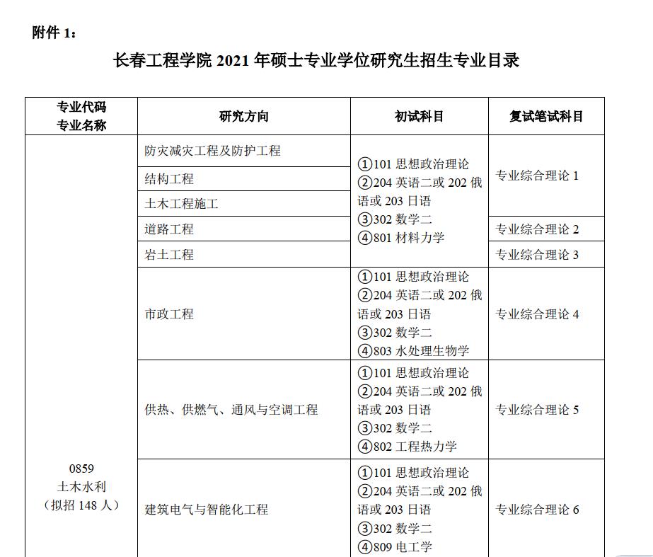 以上就是“2021考研專業目錄:長春工程學院2021年全日制專業學位碩士研究生專業目錄”的全部內容,更多資訊,盡在研線網!