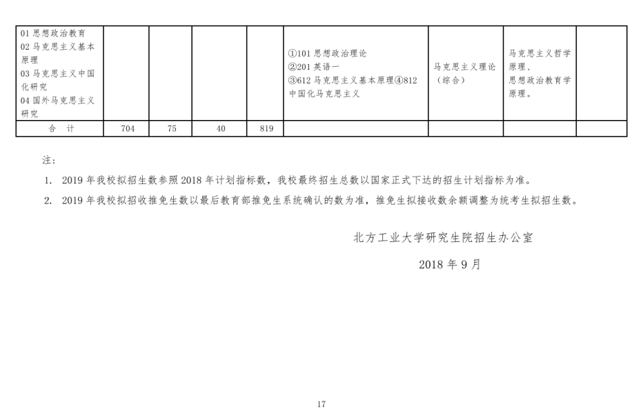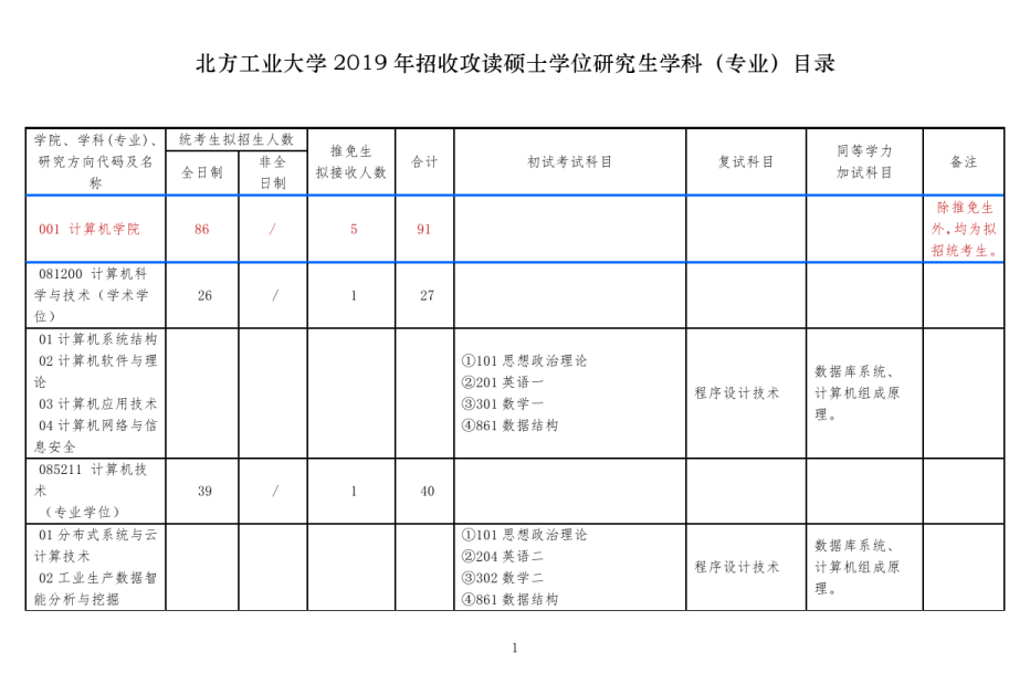 北方工業大學2019年招收攻讀碩士學位研究生學科(專業)目錄