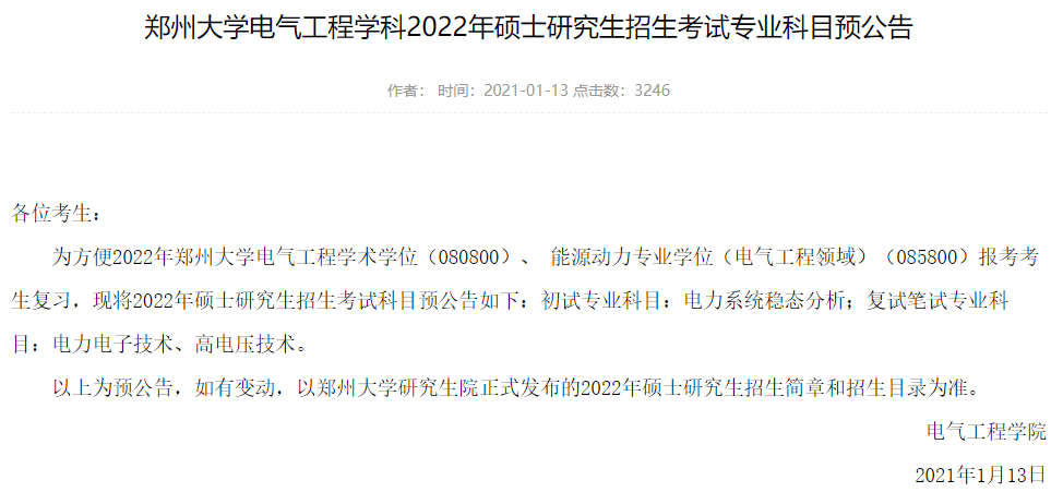 原文標題:鄭州大學電氣工程學科2022年碩士研究生招生考試專業科目預公告
