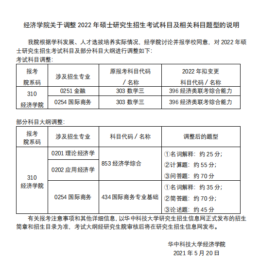 原文標題:經(jīng)濟學院關于調(diào)整2022年碩士研究生招生考試科目及相關科目題型的說明
