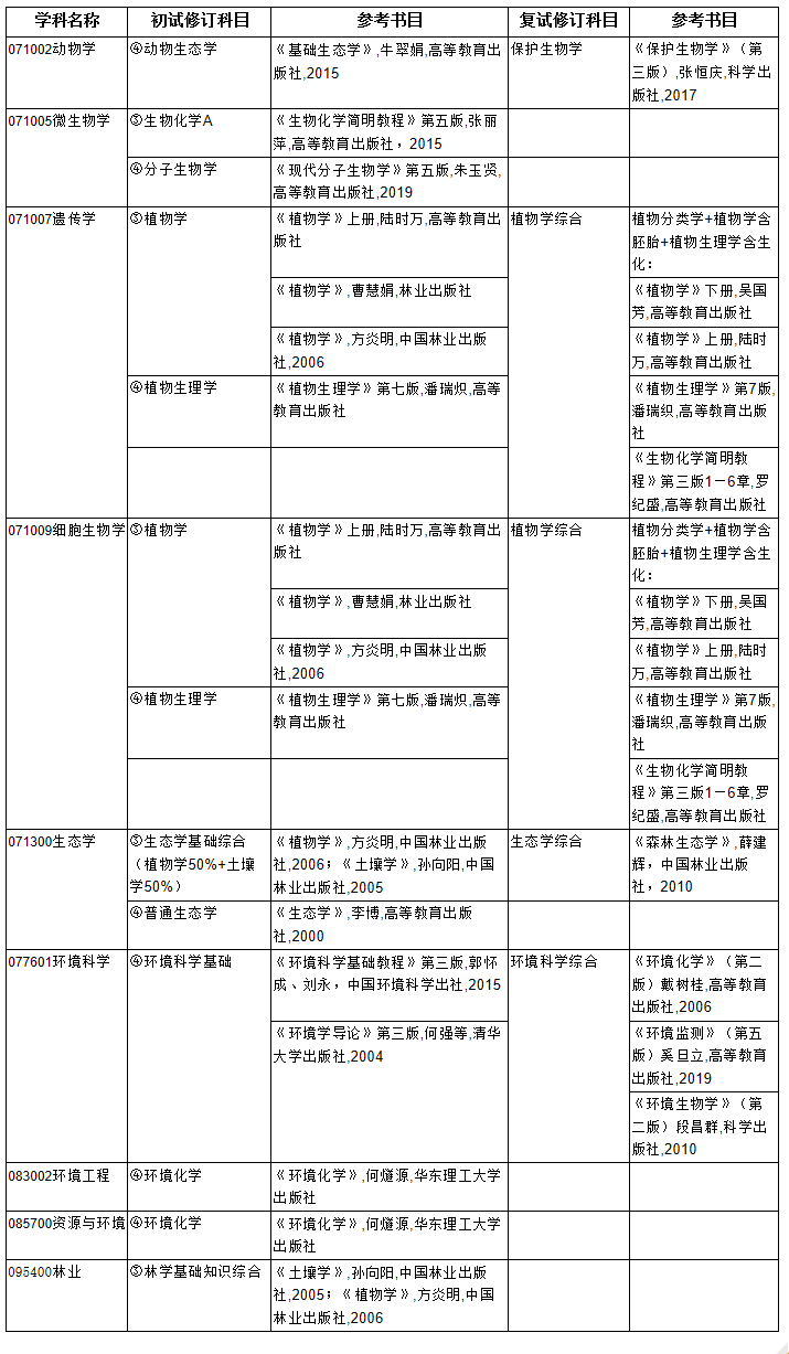 以上就是“2022考研科目調(diào)整:南京林業(yè)大學(xué)生物與環(huán)境學(xué)院2022年碩士研究生入學(xué)考試部分專業(yè)初試科目調(diào)整”的全部內(nèi)容!祝您考研成功!更多考研動態(tài)、院校資訊請持續(xù)關(guān)注本網(wǎng)站!