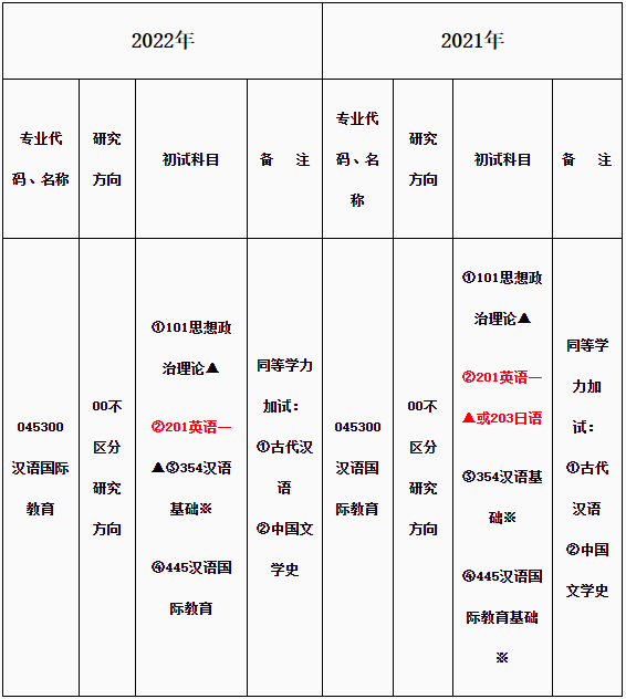根據研究生培養需要,我院2022年漢語國教育碩士招生考試初試科目調整如下: