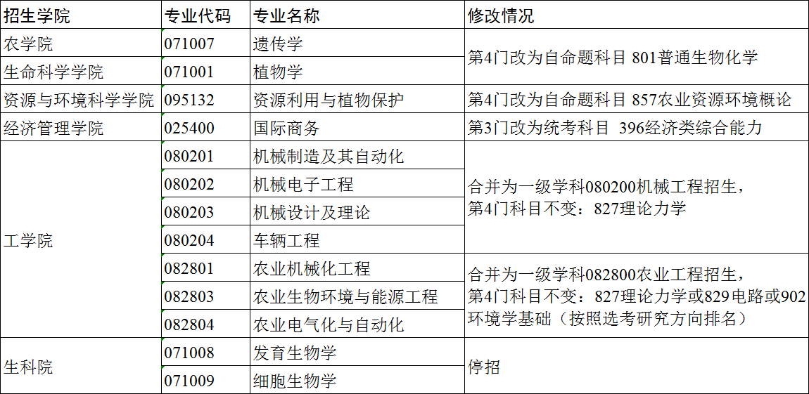 以上就是“2022考研科目調整:南京農業大學關于2022年碩士研究生招生考試專業目錄的預通知”的全部內容!祝您考研成功!更多相關信息請持續關注本網站!