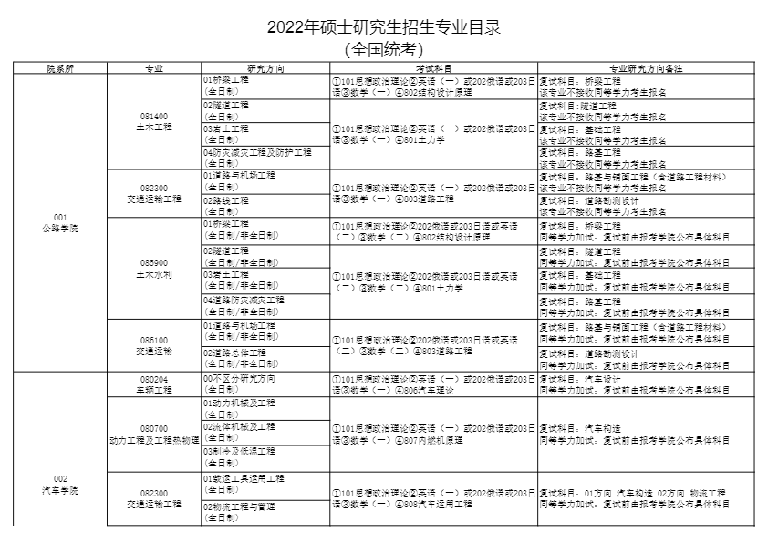 原文標題:長安大學2022年碩士研究生招生專業目錄及參考書目