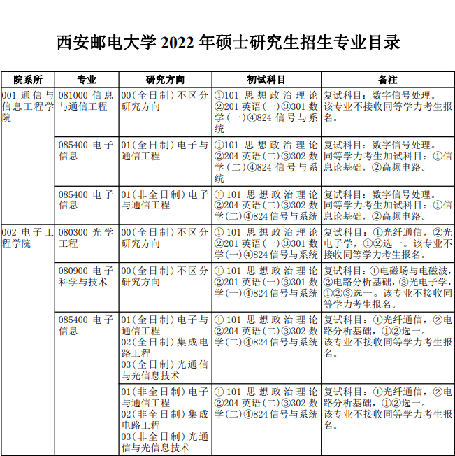 2022考研專業(yè)目錄:西安郵電大學(xué)2022年碩士研究生招生專業(yè)目錄”的全部內(nèi)容!祝您考研成功!更多相關(guān)信息請持續(xù)關(guān)注本網(wǎng)站!