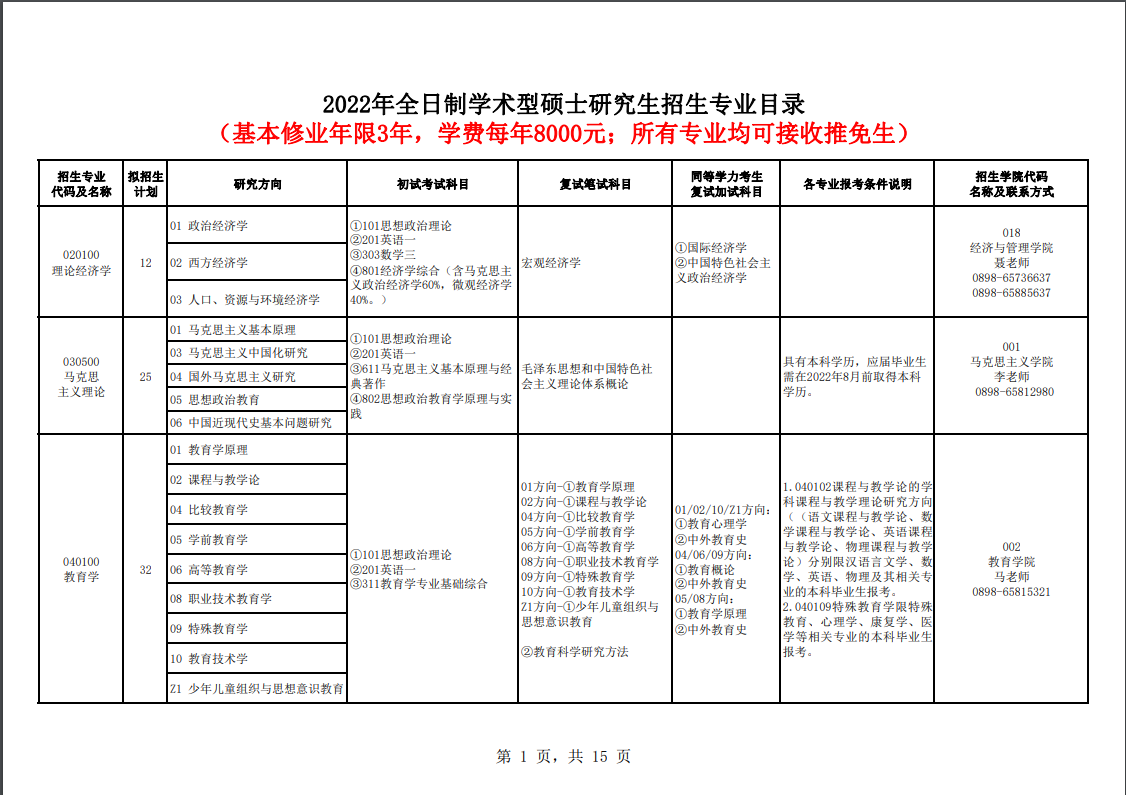 點擊查看更多:海南師范大學2022年碩士研究生招生專業目錄(20210913)