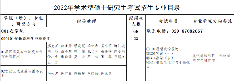 點擊查看更多:西北農林科技大學2022年學術型碩士研究生招生專業目錄