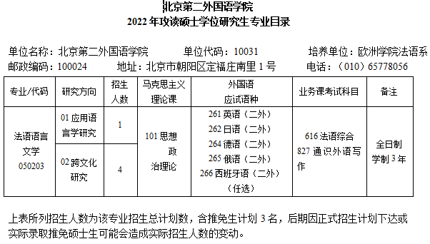 以上就是“2022考研專業(yè)目錄:北京第二外國語學院2022年碩士研究生招生專業(yè)目錄”的全部內(nèi)容!祝您考研成功!更多相關信息請持續(xù)關注本網(wǎng)站!