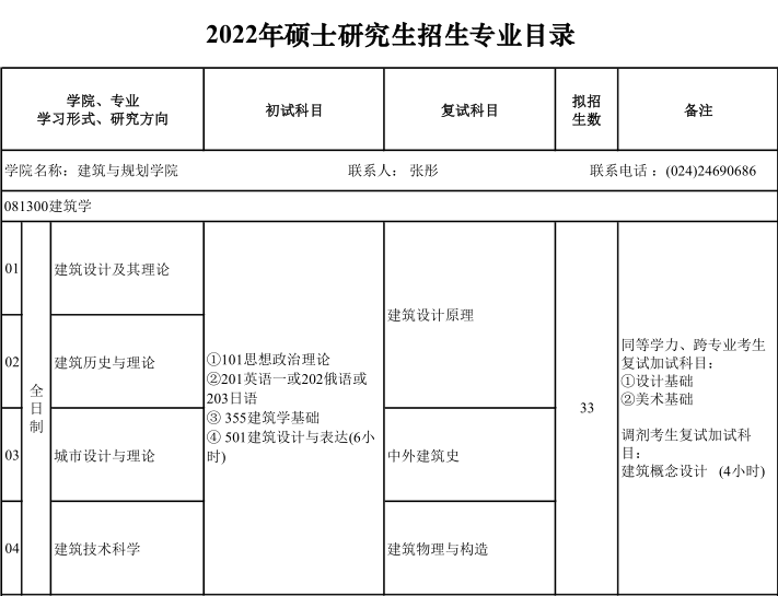 2022考研專業目錄:沈陽建筑大學2022年碩士研究生招生專業目錄