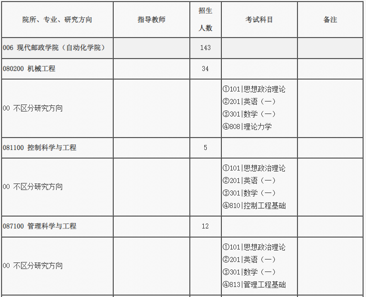 附件:北京郵電大學現代郵政學院(自動化學院)2022年碩士研究生招生專業目錄