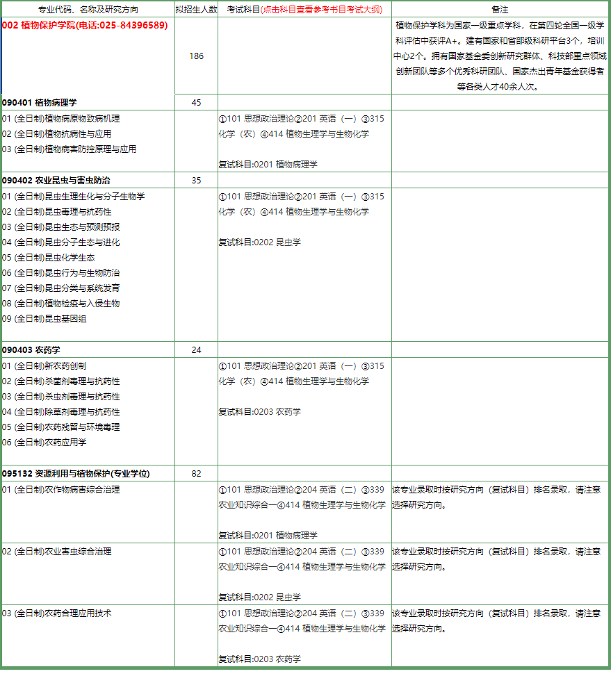 2022考研專業目錄:南京農業大學植物保護學院2022年碩士研究生招生專業目錄”的全部內容!祝您考研成功!更多相關信息請持續關注本網站!