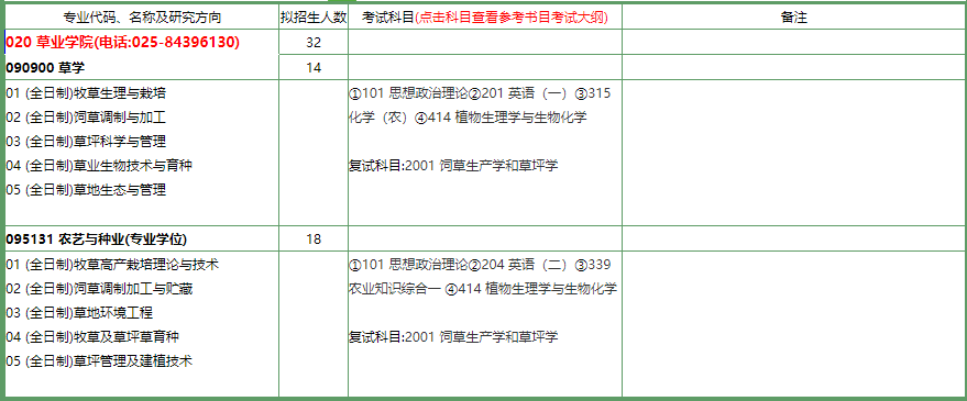 以上就是“2022考研專業(yè)目錄:南京農(nóng)業(yè)大學(xué)草業(yè)學(xué)院2022年碩士研究生招生專業(yè)目錄”的全部內(nèi)容!祝您考研成功!更多相關(guān)信息請持續(xù)關(guān)注本網(wǎng)站!