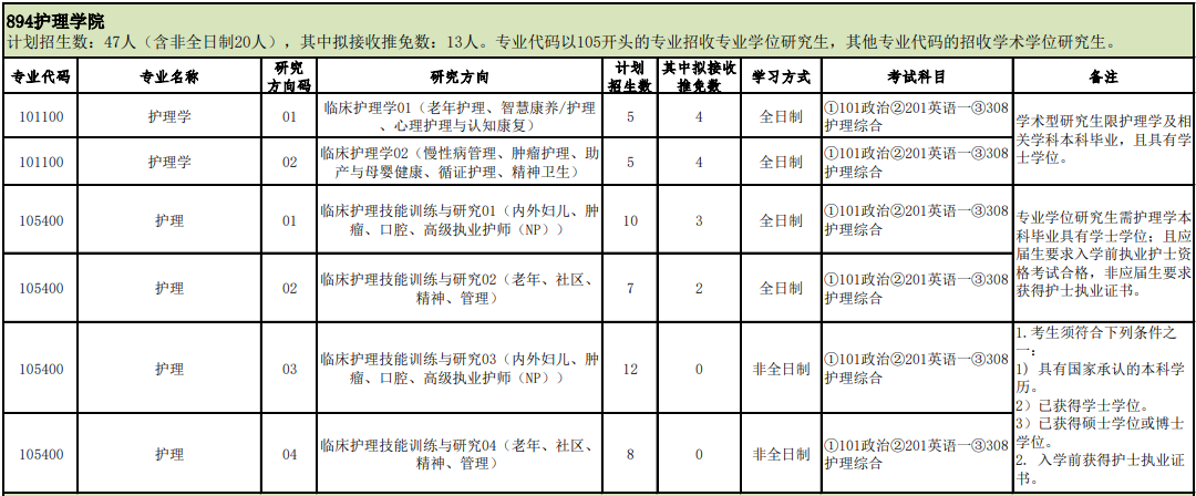 附件:北京大學醫學部894護理學院2023年碩士研究生招生專業目錄