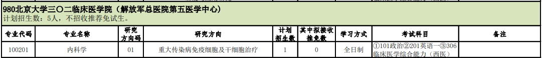 附件:北京大學醫學部980北京大學三O二臨床醫學院2023年碩士研究生招生專業目錄