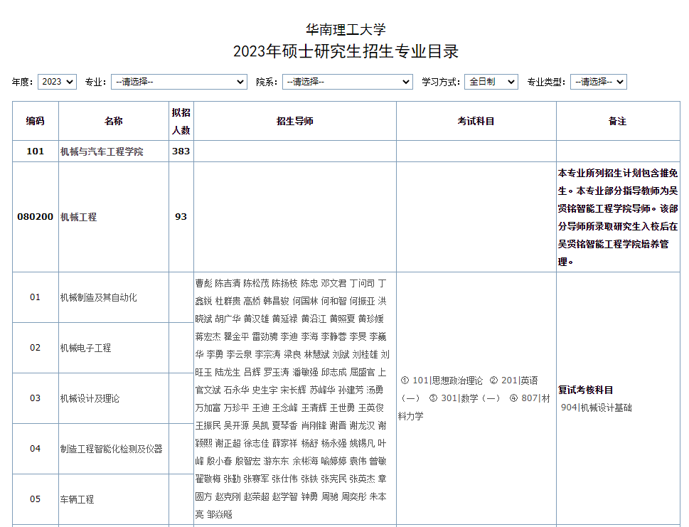 更多華南理工大學2023年碩士研究生招生專業目錄的信息,請查看原文。