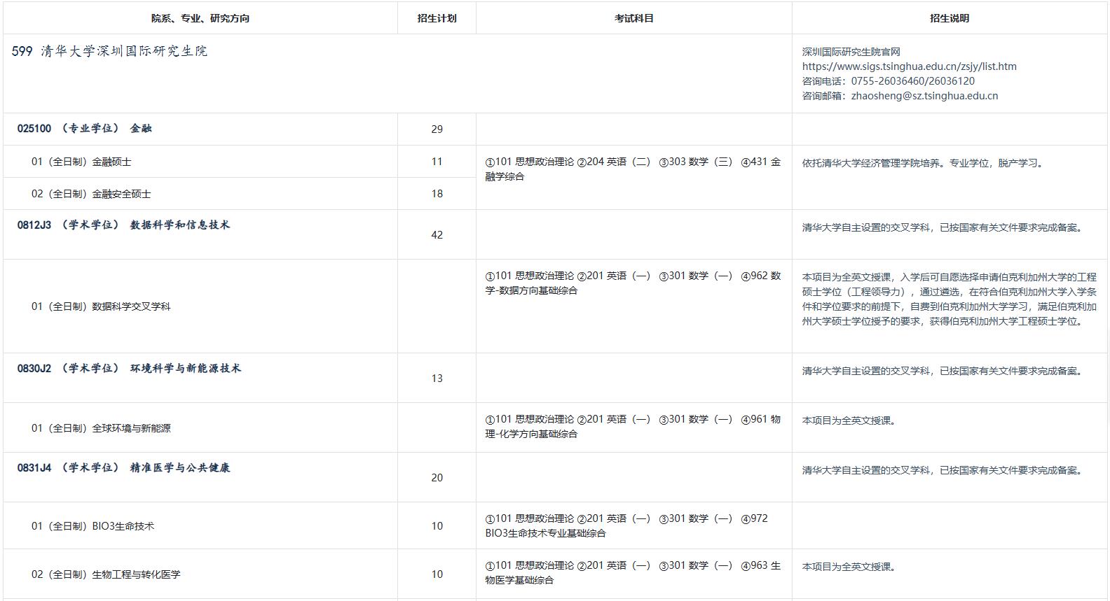2024考研專業目錄:清華大學深圳國際研究生院2024年碩士研究生招生專業目錄