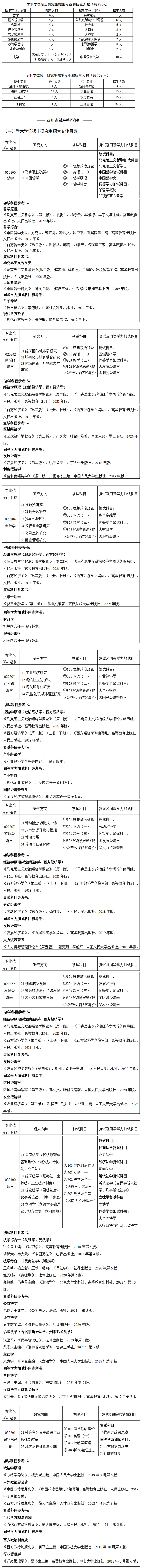 以上就是“2024考研專業目錄:四川省社會科學院2024年碩士研究生招生專業目錄”的全部內容!祝您考研成功!更多相關信息請持續關注本網站!