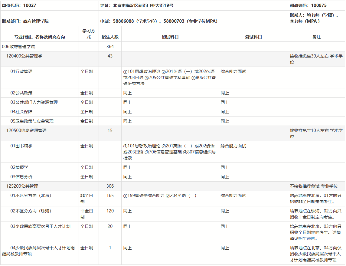 以上就是2025考研專業目錄:北京師范大學政府管理學院2025年碩士研究生招生專業目錄的全部內容!祝您考研成功!更多相關信息請持續關注本網站!