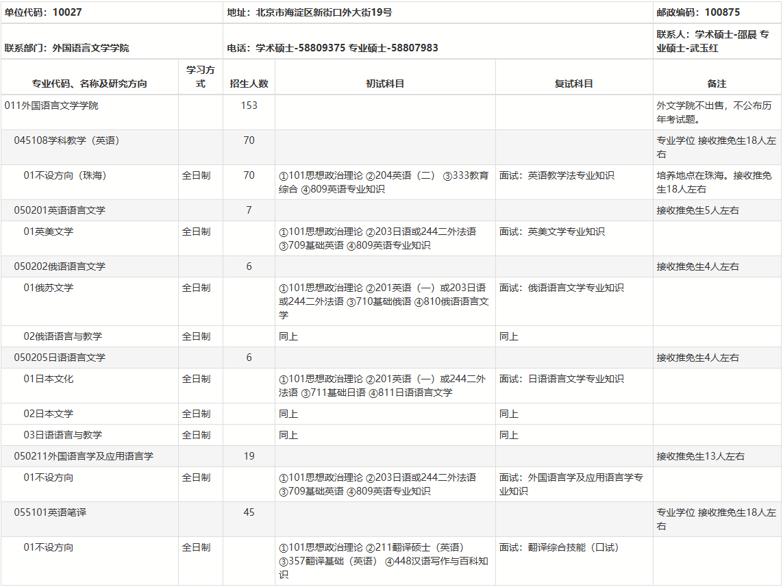 以上就是“2025考研專業(yè)目錄:北京師范大學(xué)外國語言文學(xué)學(xué)院2025年碩士研究生招生專業(yè)目錄”的全部內(nèi)容!祝您考研成功!更多相關(guān)信息請持續(xù)關(guān)注本網(wǎng)站!