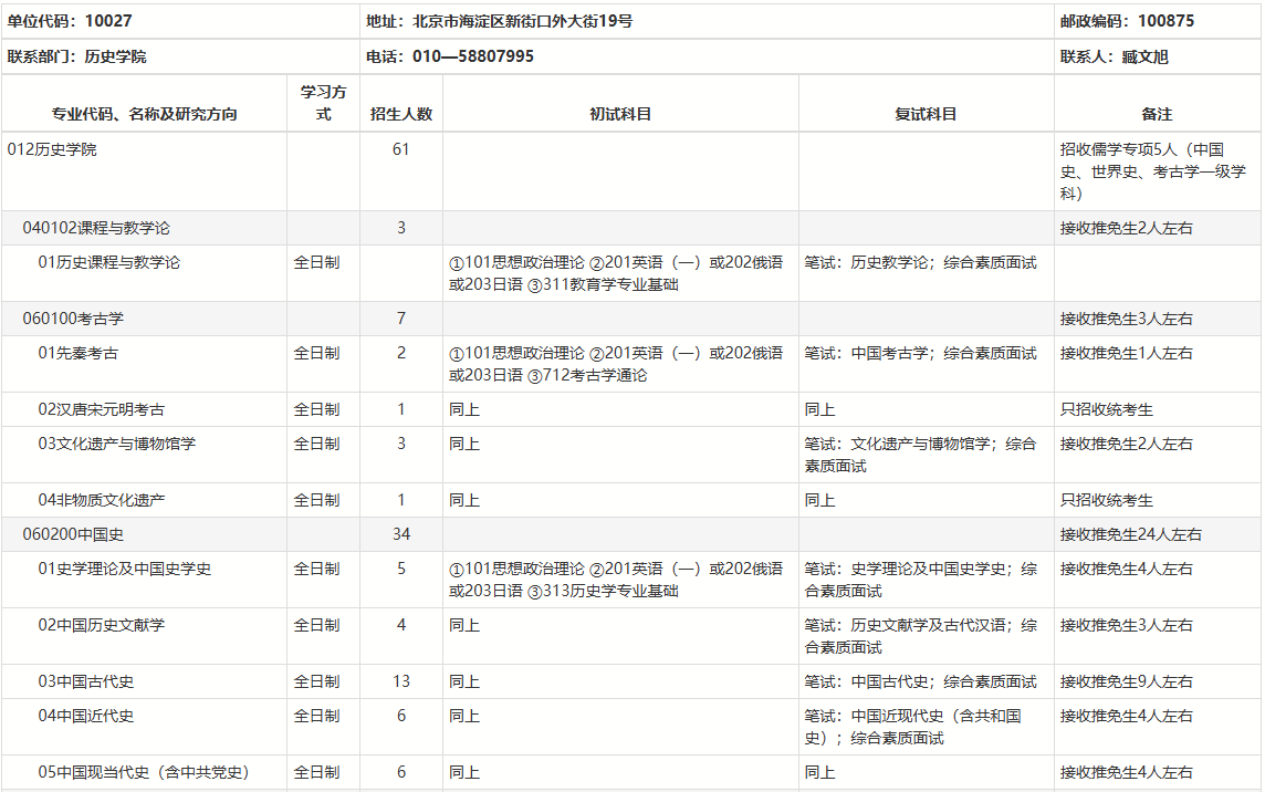 以上就是“2025考研專業(yè)目錄:北京師范大學(xué)歷史學(xué)院2025年碩士研究生招生專業(yè)目錄”的全部?jī)?nèi)容!祝您考研成功!更多相關(guān)信息請(qǐng)持續(xù)關(guān)注本網(wǎng)站!