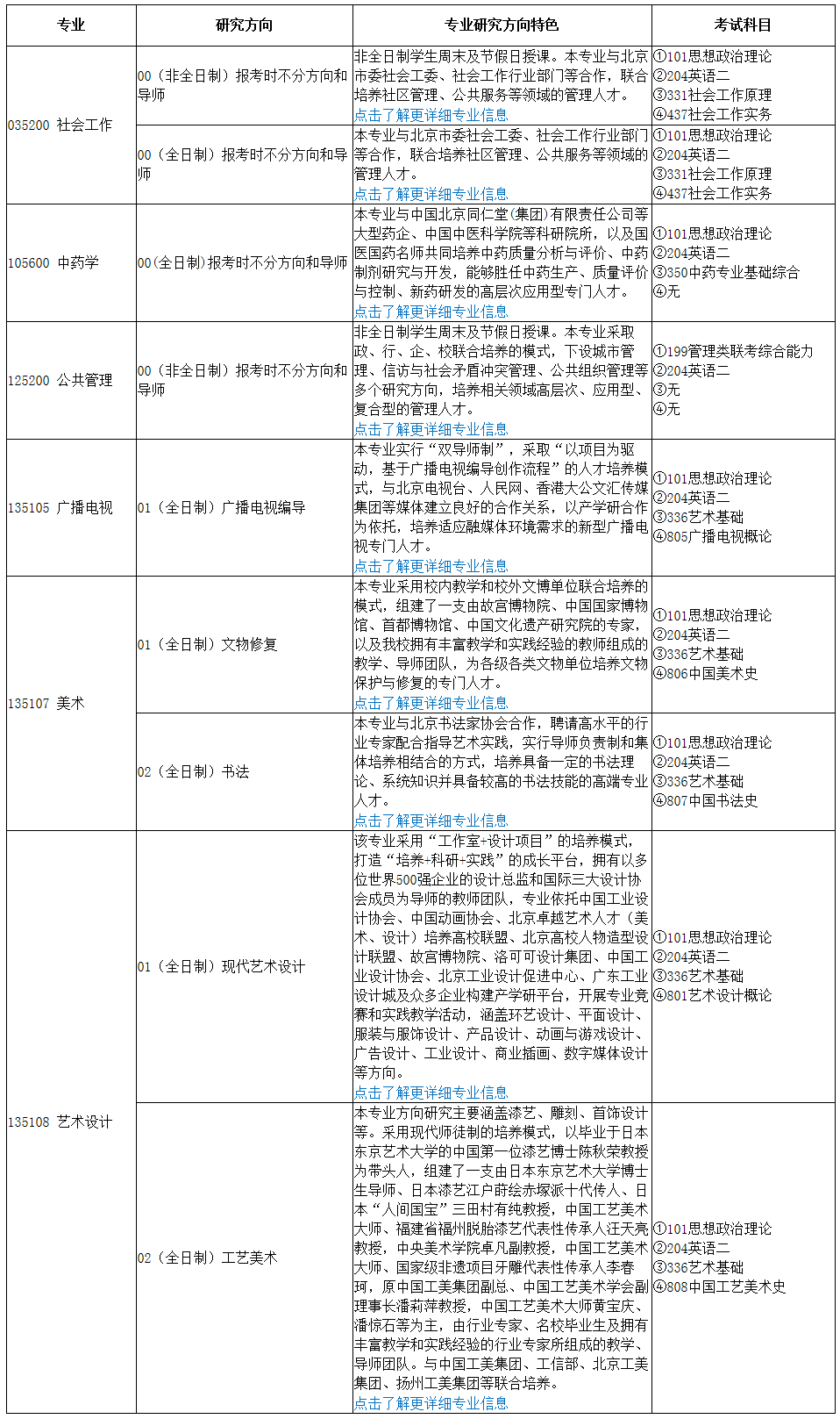 3.學制:社會工作碩士、中藥學碩士、公共管理碩士學制為二年,藝術碩士的電影、廣播電視、美術、藝術設計等各領域學制為三年,全日制和非全日制學生學制相同。