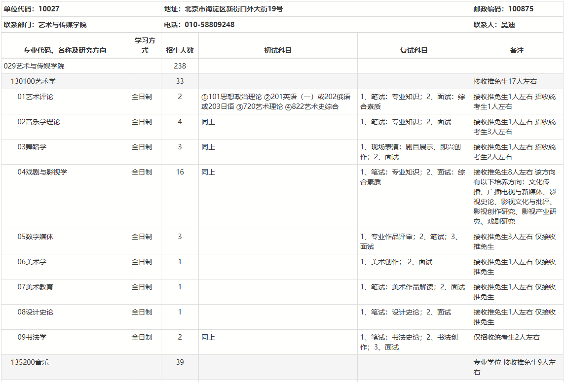 2025考研專業目錄:北京師范大學藝術與傳媒學院2025年碩士研究生招生專業目錄