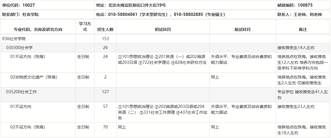 以上就是2025考研專業目錄:北京師范大學社會學院2025年碩士研究生招生專業目錄的全部內容!祝您考研成功!更多相關信息請持續關注本網站!