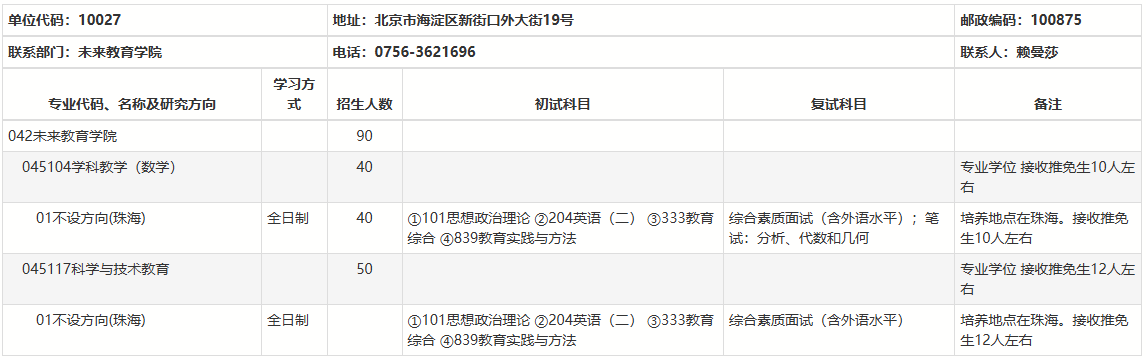 以上就是2025考研專業目錄:北京師范大學未來教育學院2025年碩士研究生招生專業目錄的全部內容!祝您考研成功!更多相關信息請持續關注本網站!