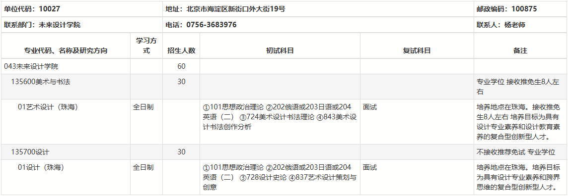 以上就是2025考研專業目錄:北京師范大學未來設計學院2025年碩士研究生招生專業目錄的全部內容!祝您考研成功!更多相關信息請持續關注本網站!