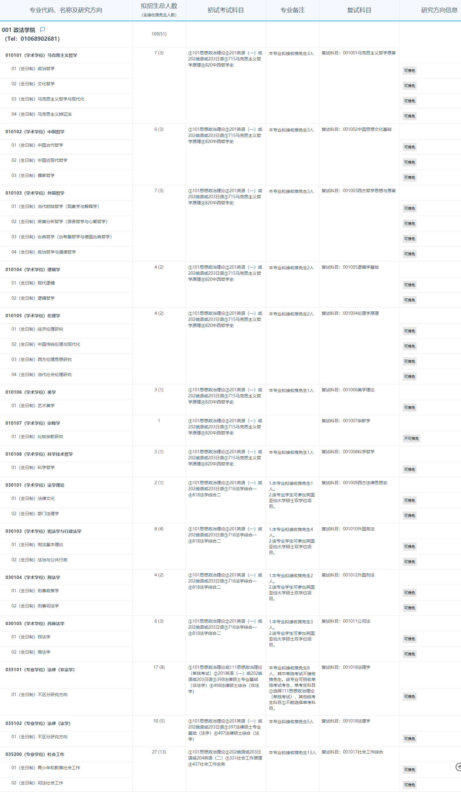2025考研專業目錄:首都師范大學政法學院2025年招收攻讀碩士學位研究生專業目錄