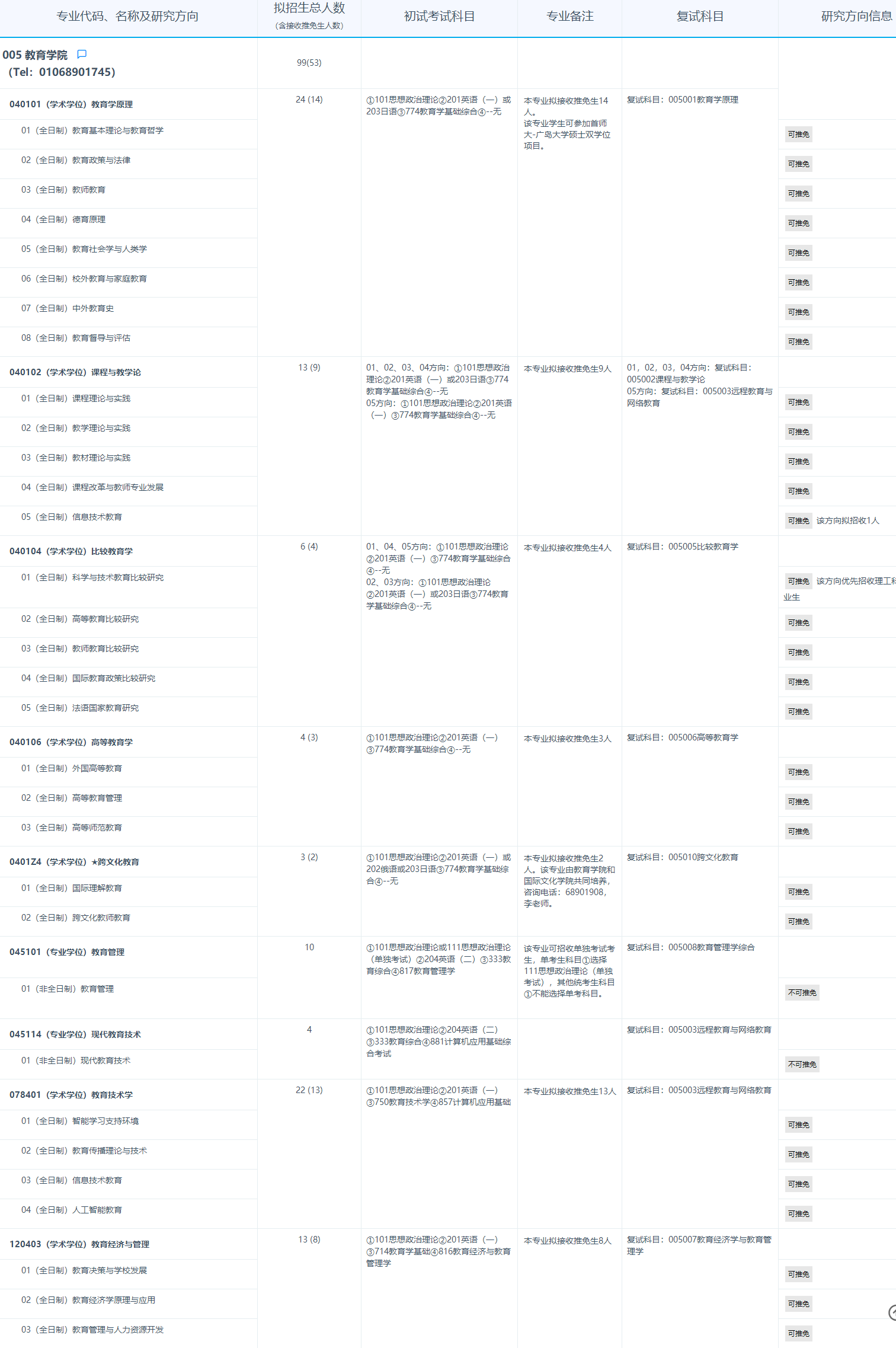 以上就是“2025考研專業(yè)目錄:首都師范大學教育學院2025年招收攻讀碩士學位研究生專業(yè)目錄”的全部內(nèi)容!祝您考研成功!更多相關(guān)信息請持續(xù)關(guān)注本網(wǎng)站!